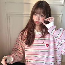 可奈粉色条纹长袖T恤女chic宽松内搭2025秋季新款薄款圆领卫衣女