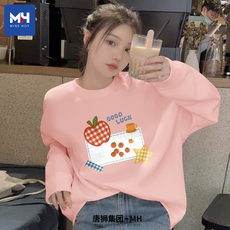 唐狮集团MH粉色卫衣女春秋2025新款初中生叠穿内搭宽松圆领上衣女