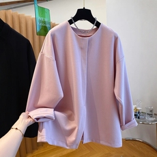 秋季宽松显瘦长袖粉色无帽单穿卫衣女2025新款设计感时尚百搭上衣
