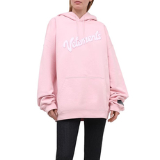 国内现货 Vetements雪糕字母贴标显瘦宽松抽绳连帽卫衣男女浅粉色