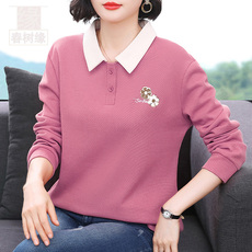 紫粉色polo领卫衣女秋冬2025新款遮肚子宽松上衣加厚妈妈装打底衫