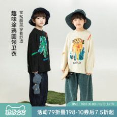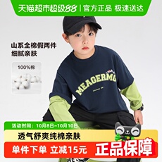 拉夏贝尔男童卫衣秋季2025新款儿童宽松长袖T恤男孩纯棉印花上衣