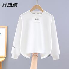 儿童纯棉打底衫男女童纯棉长袖春秋款圆领卫衣简约时尚T恤单上衣