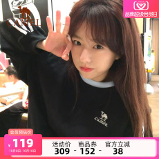 100%纯棉长袖T恤上衣女秋冬韩版宽松遮肉显瘦套头外穿拼接薄卫衣B
