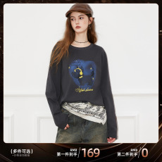 查尔斯桃心 中领花卉印花圆领纯棉长袖T恤卫衣情侣休闲百搭秋上衣