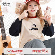 迪士尼女童长袖T恤儿童卫衣女孩春秋打底衫青少年中学生纯棉上衣