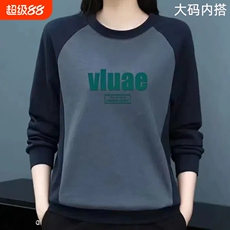 清仓捡漏~100%纯棉中年圆领卫衣女秋冬大码印花拼接长袖打底衫潮U