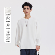 XAKA 260g重磅纯棉长袖t恤男士纯色宽松春季圆领卫衣白色打底衫潮