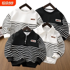 男童纯棉卫衣春秋2025新款条纹衣服儿童半拉链洋气上衣中大童长袖