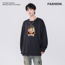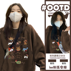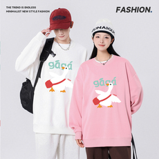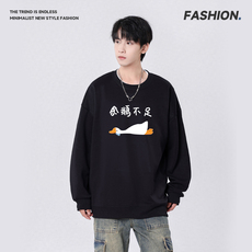 2025春秋薄款卫衣宽松显瘦慵懒风设计卡通印花圆领男女百搭上衣
