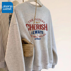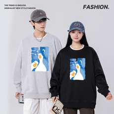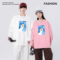 ins圆领长袖卫衣男女同款潮流印花休闲情侣装春秋季重磅套头卫衣