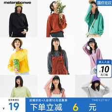 美特斯邦威圆领套头卫衣女春秋净色百搭复古甜美休闲装长袖上衣