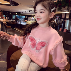 女童卫衣春秋儿童韩版上衣2025新款圆领灯笼袖蝴蝶洋气小女孩衣服