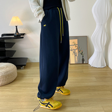美式复古慵懒风垂感直筒运动卫裤女春秋阔腿长裤宽松休闲弯刀裤子
