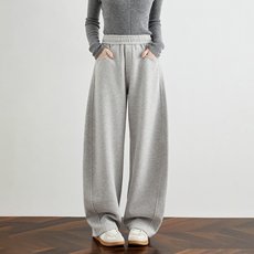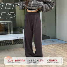 【玉米专享】高品质显瘦高腰垂感阔腿裤卫裤加绒加厚弯刀慵懒裤