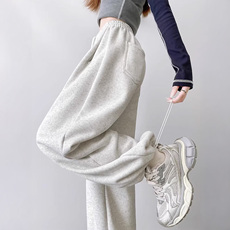 白灰色运动裤女秋冬季高腰垂感宽松休闲阔腿裤加绒小个子束脚卫裤