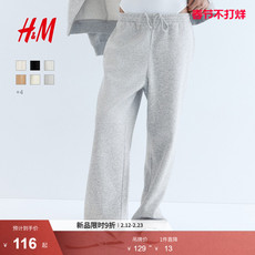 HM女装卫裤春季休闲裤直筒宽松加绒运动男友裤松紧长裤1193602