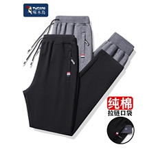 法国公鸡运动裤男卫裤纯棉毛圈宽松口袋拉链跑步休闲束脚春秋长裤