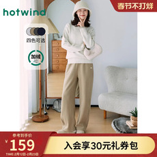 热风女士加绒直筒卫裤2025年冬季新款微弹松紧腰简约直筒显瘦长裤
