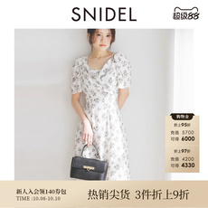 SNIDEL2025春夏新品优雅淑女泡泡袖亮片雪纺印花连衣裙SWFO251088