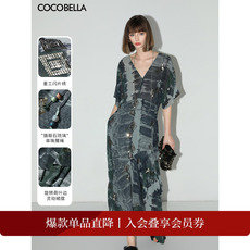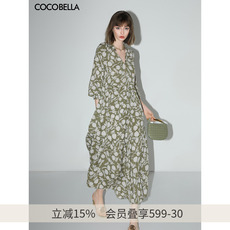 COCOBELLA温柔气质印花雪纺连衣裙夏清新飘逸大码茶歇裙FR7020