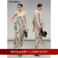 【3件5折】COCOBELLA花卉印花雪纺压褶吊带裙飘逸大摆连衣裙FR182