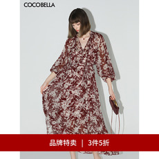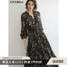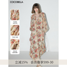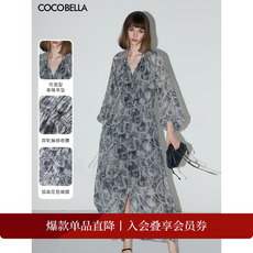 【折扣季】COCOBELLA度假风长袖雪纺连衣裙女高腰印花茶歇裙FR113