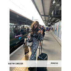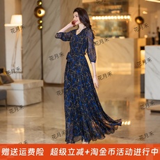 2025年秋冬新款印花大摆连衣裙收腰显瘦旅游度假长裙雪纺裙沙滩裙