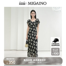 Xinlei Lin“暗夜花园”浪漫蕾丝碎花垂坠r*3雪纺印花吊带连衣裙