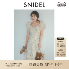 SNIDEL秋冬甜美气质领结收腰系带抽褶印花雪纺连衣裙SWFO234107