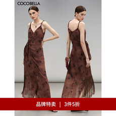 【3件5折】COCOBELLA晕染印花雪纺连衣裙女流苏扭结吊带裙FR7042