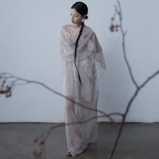 Giasemí 原创新中式印花收褶露背吊带雪纺连衣裙长 度假仙女裙