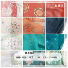 汉服唐宋明风敦煌团花印花布料齐胸群褶裙古风天丝雪纺连衣裙面料