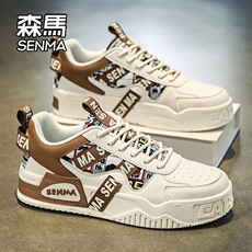 森马男鞋秋季情侣百搭休闲厚底真皮板鞋运动内增高空军小麦色潮鞋