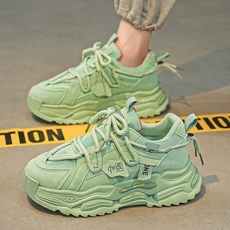 男鞋秋季老爹运动绿色休闲跑步增高厚底网面大头炸街透气ins潮鞋