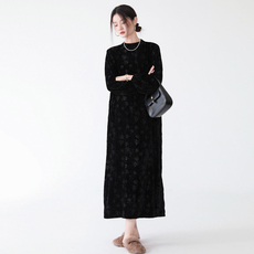 因由 极简纸片人气质秋冬长袖裙子前开衩设计感内搭长款连衣裙女
