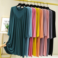 莫代尔长袖睡裙女宽松连衣裙薄款大码家居服睡衣裙大摆显瘦百褶裙