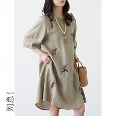 小耳出品【晚香玉】细苎麻气质小碎花改良旗袍复古印花宽松连衣裙