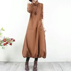 高级韵味咖色德绒秋冬款连衣裙原创设计半高领保暖宽松显瘦长裙女