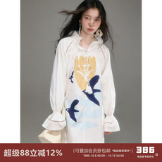 有耳uare原创设计 伯德小姐 可拆卸飘带手钩花针织拼接长袖连衣裙