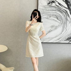 法式小香风高级感方领连衣裙女夏季新款今年流行爆款气质名媛短裙
