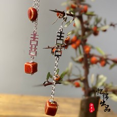 YIMIAN 原创时尚设计民族风双喜字长款流苏气质鸳鸯耳饰