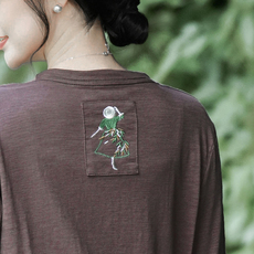 双面绣 文艺复古竹节棉T恤女2025新款春秋季原创设计刺绣长袖上衣
