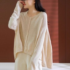 小耳出品 软糯亲肤棉麻圆领外套 温柔气质单排扣百搭长袖上衣女