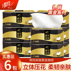 清风抽纸黑金原木纯品抽纸巾压花家用面巾纸餐巾纸实惠装6包装