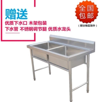 304商用不锈钢水槽单双槽三水池洗菜盆洗刷洗碗池厨房饭店家用