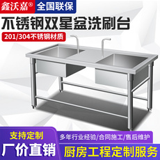 304不锈钢水槽厨房支架商用饭店洗衣台洗菜盆洗碗池带平台洗刷盆