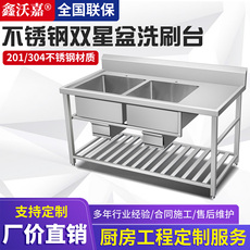 商用201不锈钢洗刷台单水槽带平台双层洗碗池洗菜盆厨房餐厅食堂