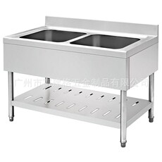 开门双槽不锈钢水池商用酒店厨房洗刷池残食台污碟台水盆定做304
