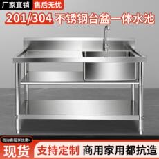 304不锈钢台盆一体操作台带平台洗刷台家用厨房洗菜台洗碗池水槽